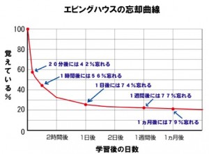 1ヶ月後(30日間後)には79%を忘却し、21%を保持していた。
